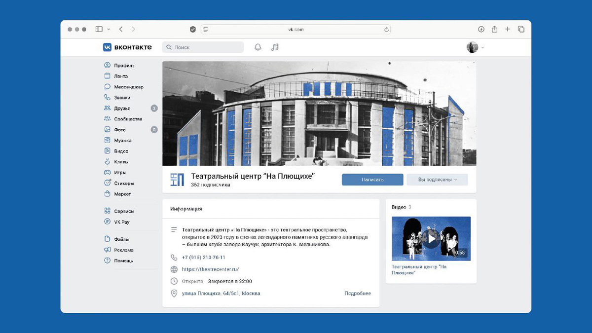Ирина Клименко разработала рекламно-графический комплекс для театрального центра «На Плющихе». А это, между прочим, знаменитый клуб завода «Каучук» — памятник русского авангарда по проекту Константина Мельникова. Рассмотрим кейс нашей студентки.