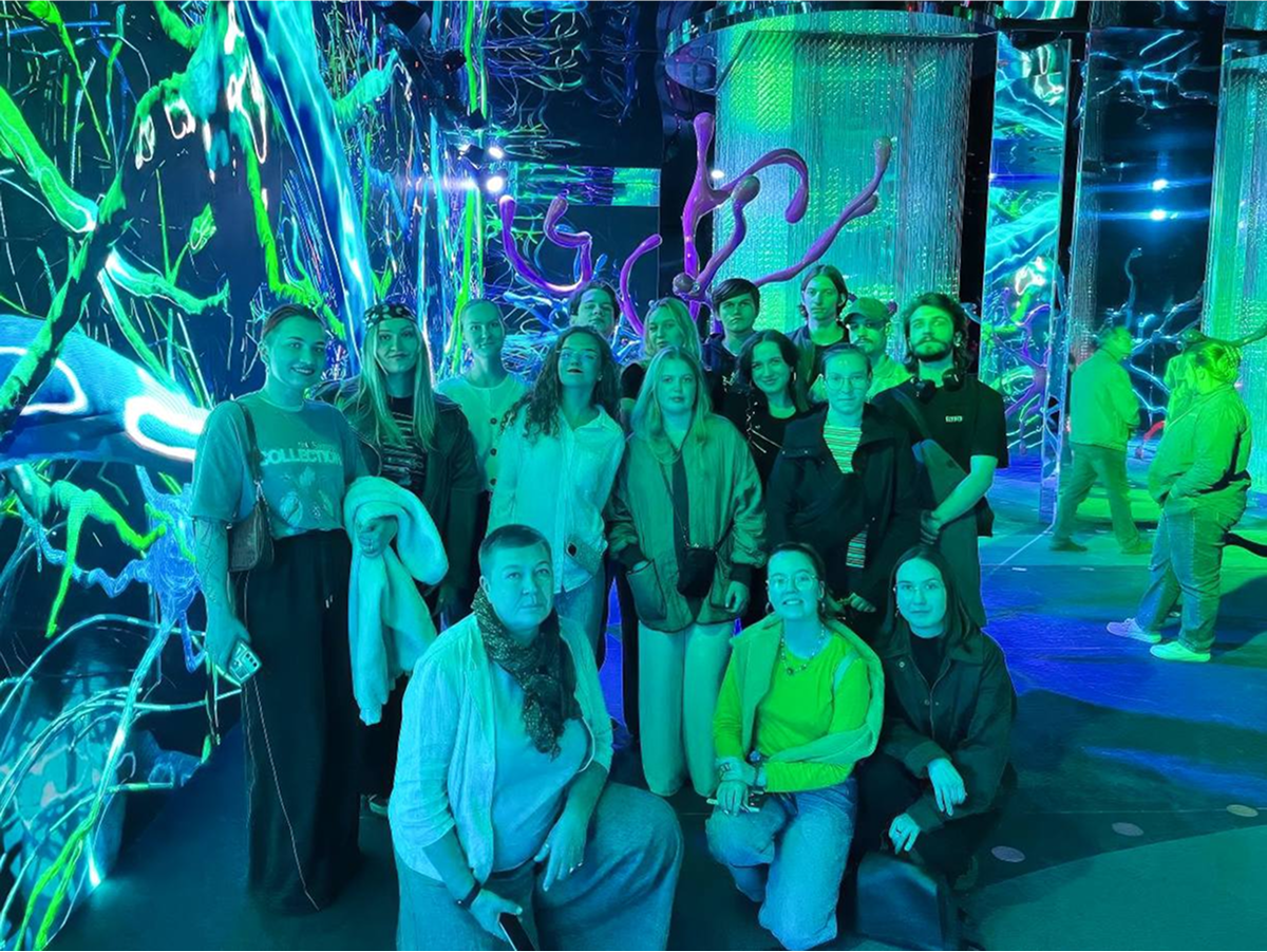 Задачей практического занятия стал анализ визуального языка экспозиций выставки и используемых при их разработке художественных инструментов и технологий формирования современного экспозиционного диалога.