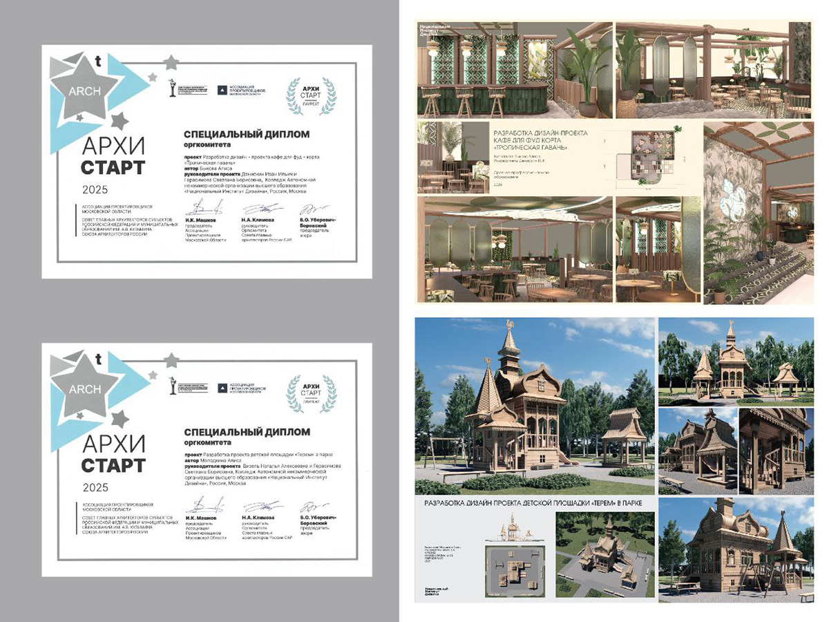 Конкурс подчеркнул высокий уровень подготовки студентов и совместную работу команды преподавателей: под руководством Светланы Борисовны Герасимовой и кураторов профильных дисциплин работы наших выпускников стали заметными примерами проектирования среды — от интерьеров до общественных пространств.